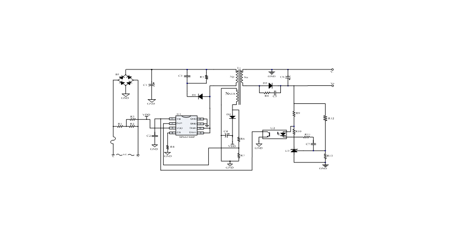 SP6618HP是一顆電流模式PWM控制芯片,內置650V高壓功率MOSFET,應用于功率在18W以內的方案。SP6618HP在PWM模式下工作于固定開關頻率,這個頻率是由內部精確設定。在空載或者輕載時,工作頻率由IC內部調整。芯片可以工作在綠色模式,以此來減小輕載時的損耗,提高整機的工作效率。SP6618HP在啟動和工作時只需要很小的電流,可以在啟動電路中使用一個很大的電阻,以此來進一步減小待機時的功耗。芯片內置有斜坡補償電路,當電路工作于大占空比時,避免次諧波振蕩的發生,改善系統的穩定性。內置有前沿消隱時(Leading-edge blanking time),消除緩沖網絡中的二極管反向恢復電流對電路的影響。SP6618HP采用了抖頻技術,能夠有效改善系統的EMI性能。系統的跳頻頻率設置在音頻(20KHz)以上,在工作時可以避免系統產生噪音。SP6618HP內置多種保護,包括輸出過壓保護(VOUT OVP),逐周期限流保護(OCP),過載保護(OLP),過壓保護(VDD OVP),VDD過壓箝位,欠壓保護(UVLO),過溫保護(OTP)等,通過內部的圖騰柱驅動結構可以更好的改善系統的EMI特性和開關的軟啟動控制。