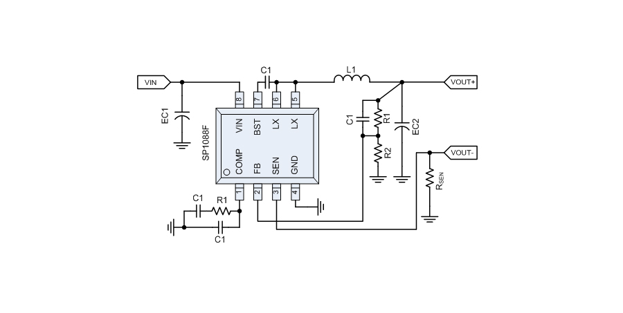 SP1088F適用于有限流要求的DC/DC開關電源,芯片采用SOP8封裝,僅需較少的外部器件。