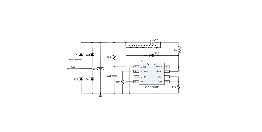 SP5366P是一款高精度非隔離降壓型LED照明轉換芯片。此款芯片工作在電感電流臨界連續模式,適用于85Vac~265Vac全電壓范圍下的非隔離降壓型恒流LED驅動電源。