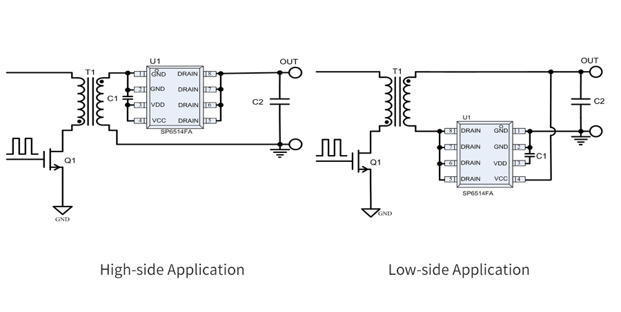 SP6514FA是一顆高性能的開關電源次級側同步整流控制電路。在低壓大電流開關電源應用中,輕松滿足6級能效,是理想的超低導通壓降整流器件的解決方案。芯片可支持高達150KHz的開關頻率應用,并且支持CCM / QR / DCM等開關電源工作模式應用,其極低導通壓降產生的損耗遠小于肖特基二極管的導通損耗,極大提高了系統的轉換效率,大幅降低了整流器件的溫度。